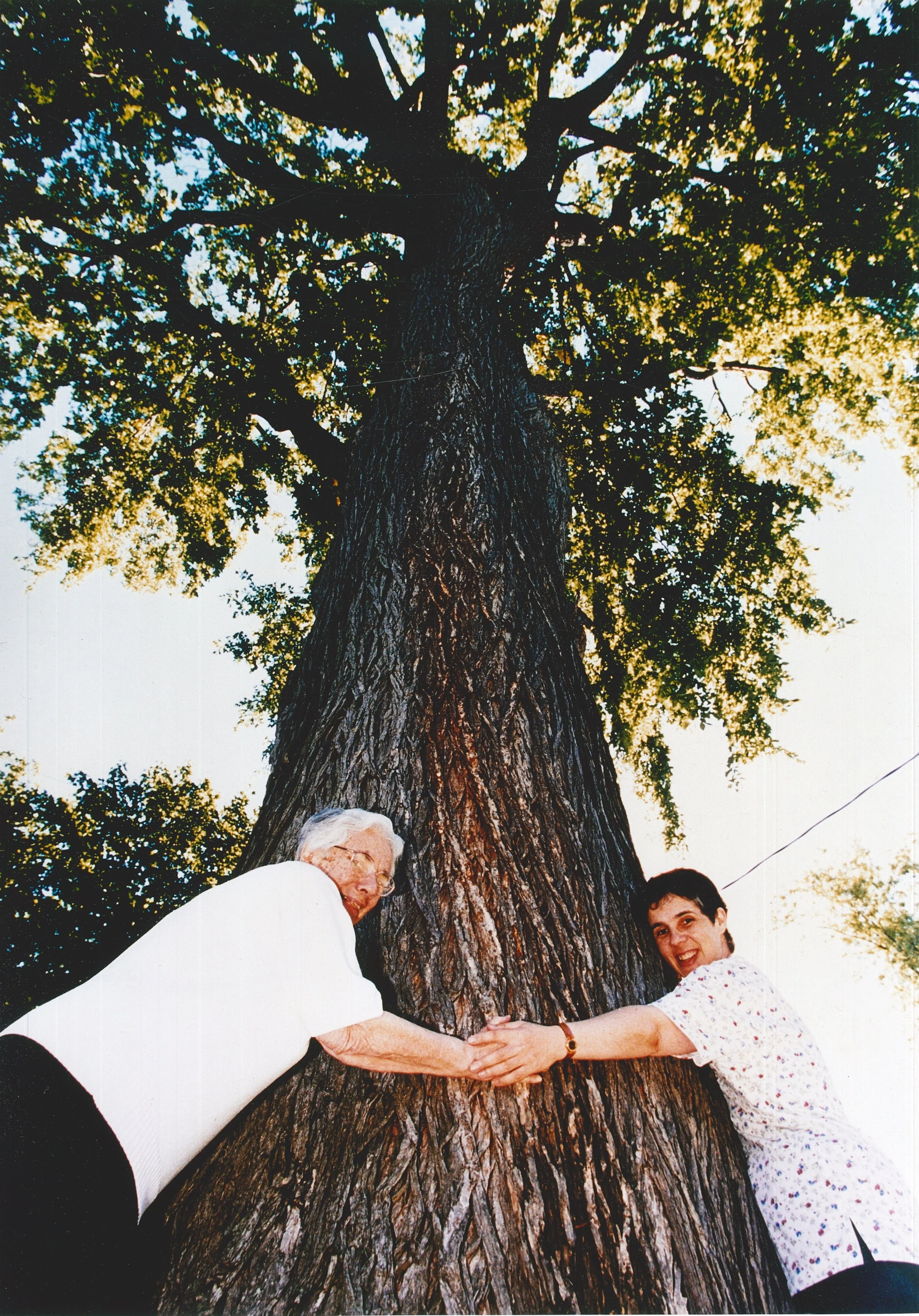 Lois Adler's Mother, Hilda and her Sister, Sarah hugging the great old elm tree in Humewood Park.